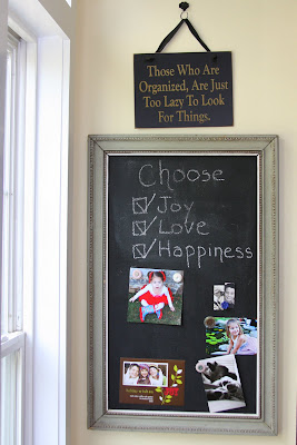 Since I'm not working and Matt and I are constantly fussing with this and that around the house, my lack of income has hindered more than a few projects. Also take into consideration that I really feel like some how my 3 kids feel like I'm feeding a small army when it comes to the grocery store. Is it just me, or do kids snack more now than we did? I REALLY don't remember having snacks like my kids (and their peers from what I hear~ Gosh, I sound like Dr. Seuss). Anyway, I've been just moving stuff around the house to keep me happy. Just little changes here and there. This hooray flash card was on one of my magnet boards but I moved it to the kitchen sink. You know, the whole power of suggestion thingy. That's where I have my little family but I moved "me" next to my antique flower frog w/hoooray sign so I'd look like