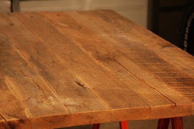 original saw marks and patina. We even found WORM HOLES in one section of the wood. I got so excited over those. Yes, I'm a geek like that. If you click this second photo to make it larger, you can see them. After giving her a good bath with Murphy's oil soap,we did some internet research on finishing the piece. I DID NOT want to use a urethane product. We decided on a Tung oil finish and then topped with bees wax or another wax (we haven't decided that yet) Tung oil has the smallest molecular structure so it seeps into the wood better. I want to be able to FEEL the wood not feel the finish. Of course, we'll have to wax it like once a month but that's not a problem for Matt, he loves waxing. Wax on. Wax off. :-) We don't know how we are going to do the mahogony legs yet. They need to be cut down to size still and finished but we can decide that after we put it on the island base. It looks so different now then it did doesn't it? http://whimages.blogspot.com/2009/09/reclaimed-wood-second-chance-salvage.html I'm in LOVE!