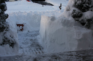 Living smack dab in the center of the mid atlantic region meant that we got pelted with the Blizzard of '10. Basically my job was to ration milk and toilet paper to my family and insure that the dryer ran constantly. I did not/will not be stepping outside anytime soon. However,it sure is pretty! The first photo is the side walk up to out front porch. That's my Commander covered in a fluffy winter blanket. If you refer to the last post, you'll see what part of the play house looks like, now it's smothered under a large pine branch that broke off this morning from the heavy white goodness.